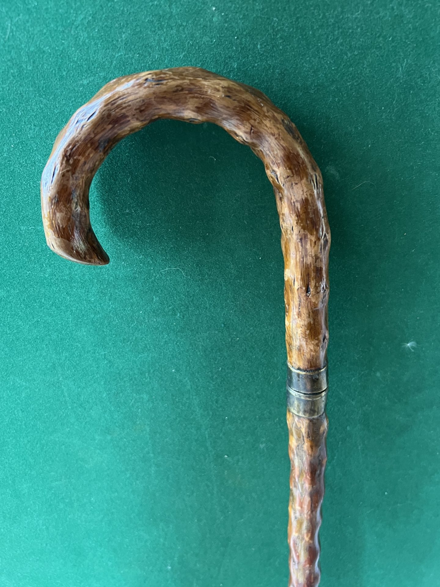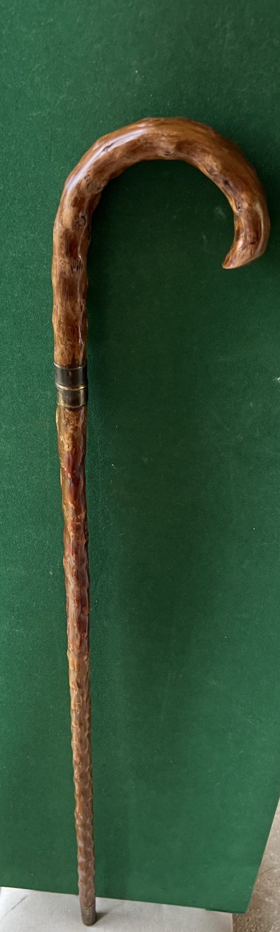 Le pommeau corbin est en épineux ainsi que le fût - la férule est en cuivre - la lame carrée mesure 47 cm - la fermeture est un quart de tour - la férule en cuivre mesure 42 mm - la longueur est de 90 cm - époque première moitié du 19 ieme