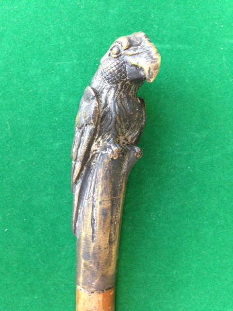 Canne d'art. Pommeau en laiton en forme de perroquet perché.
