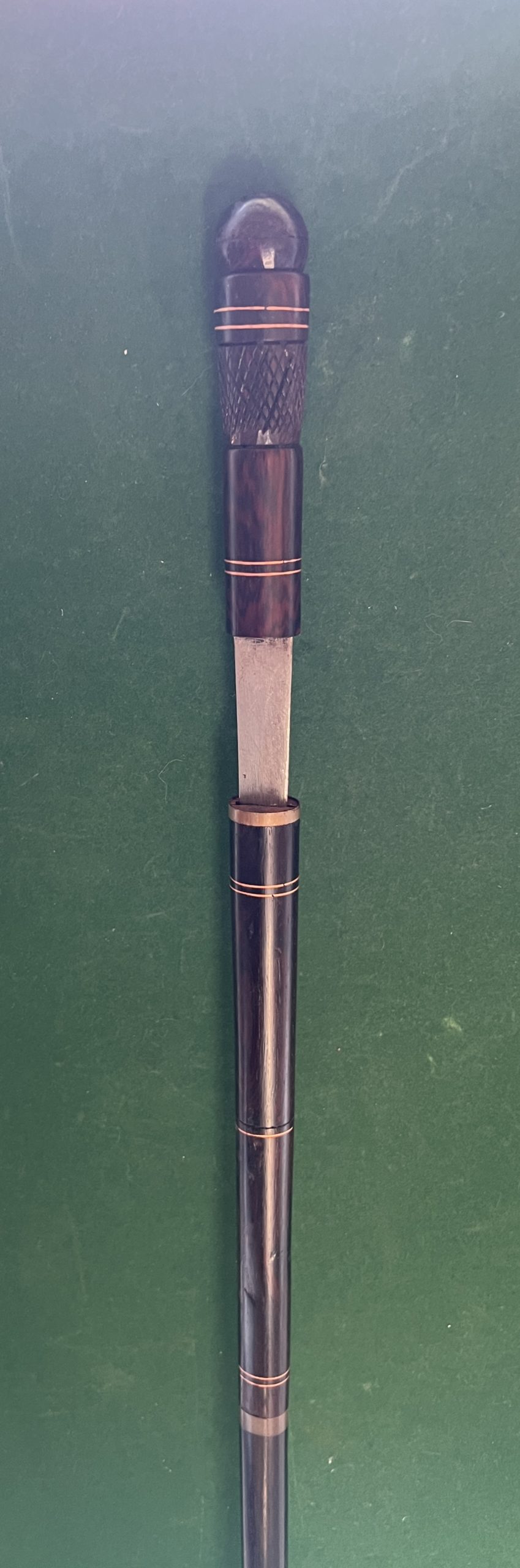 La lame du couteau est en fer et mesure 20 cm - la longueur est de la canne est de 1 m10 - époque début 20 ieme