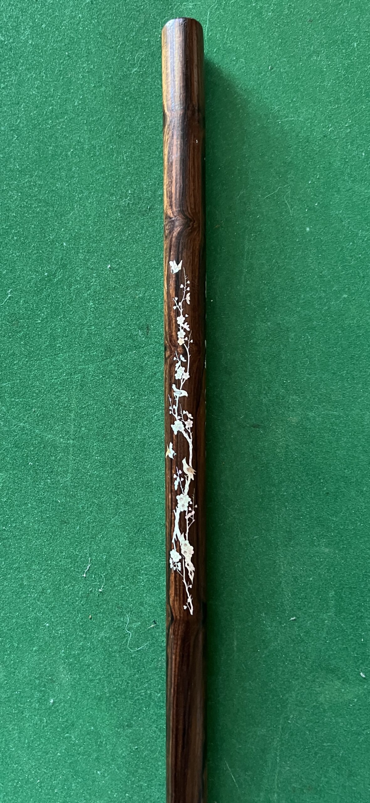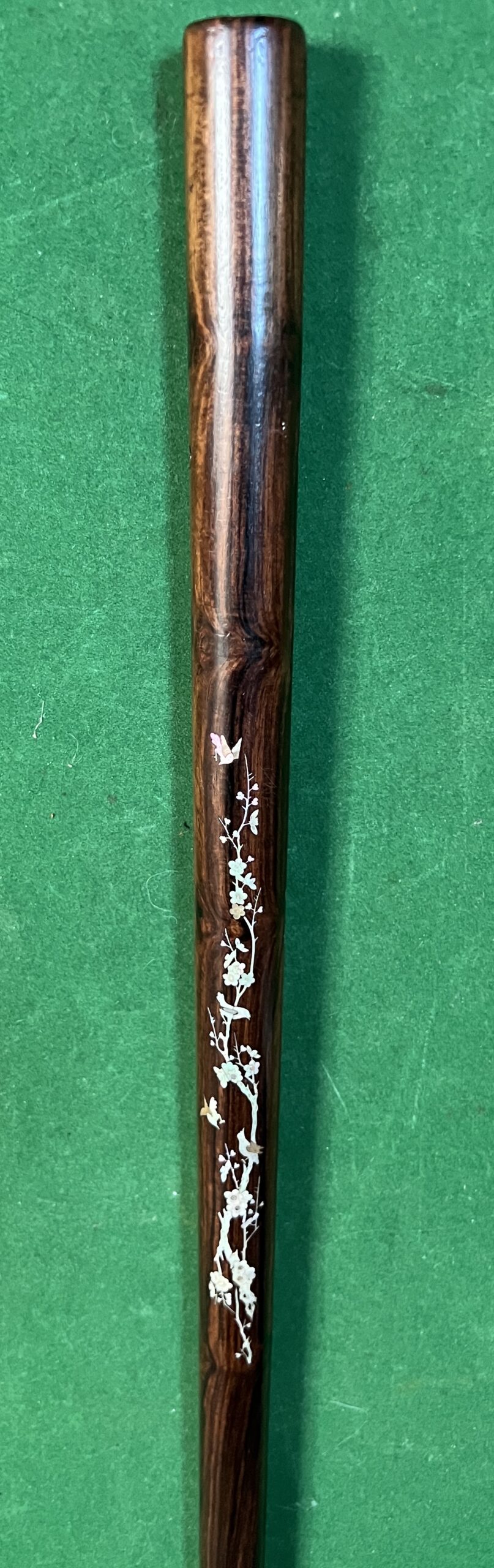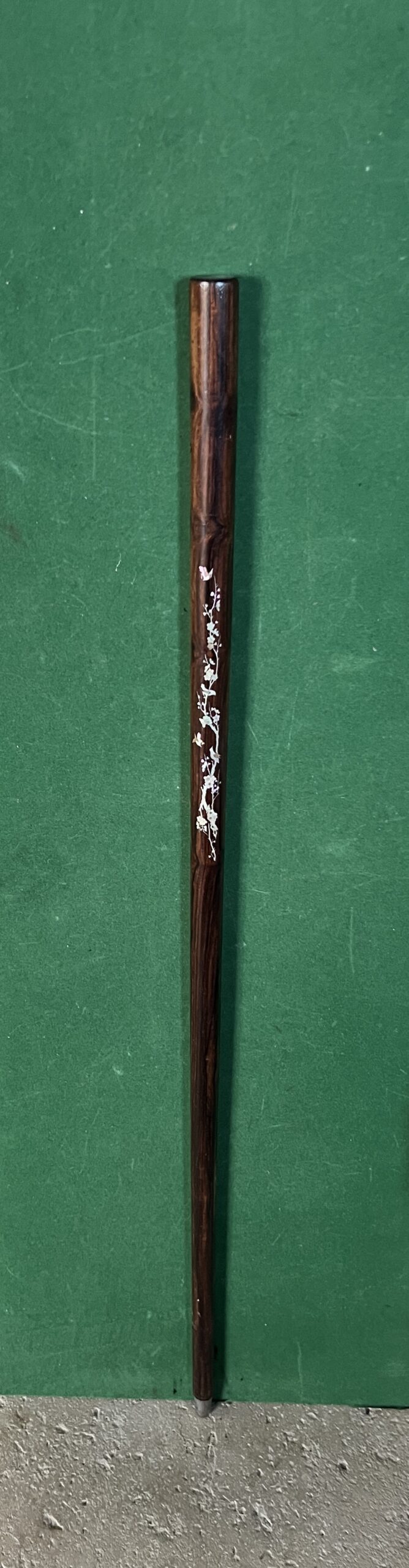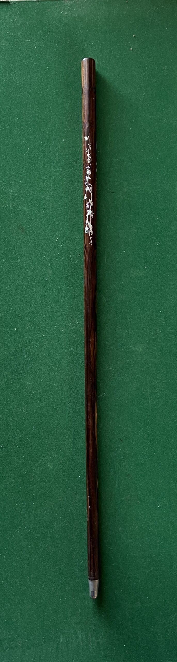 très jolie bâton de combat - le fût est d’un seul morceau - bois exotique très dur et non cassant - la longueur est de 90 cm - très riche décor sur la partie haute de la canne - la férule est en fer blanc avec talon en acier - époque Napoléon trois - il existe toujours des combats de cannes - il est sûrement un bâton de parade /