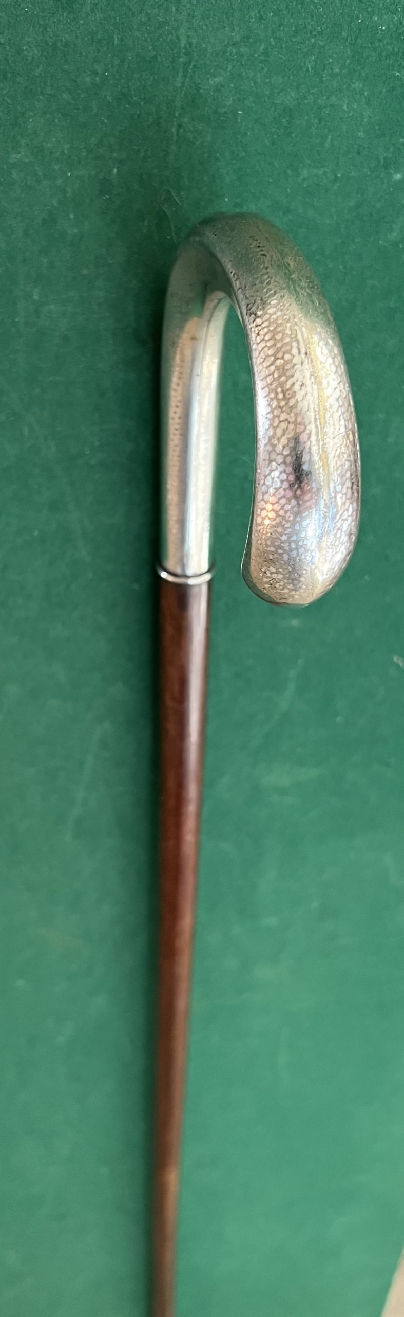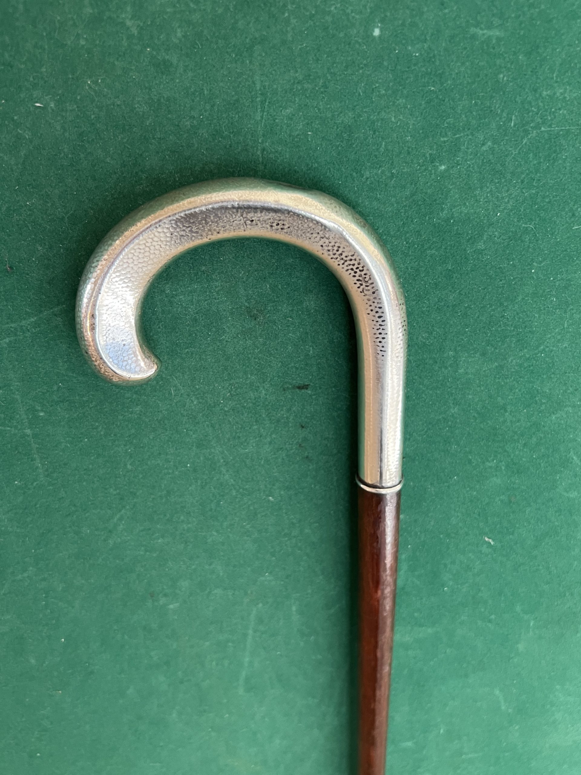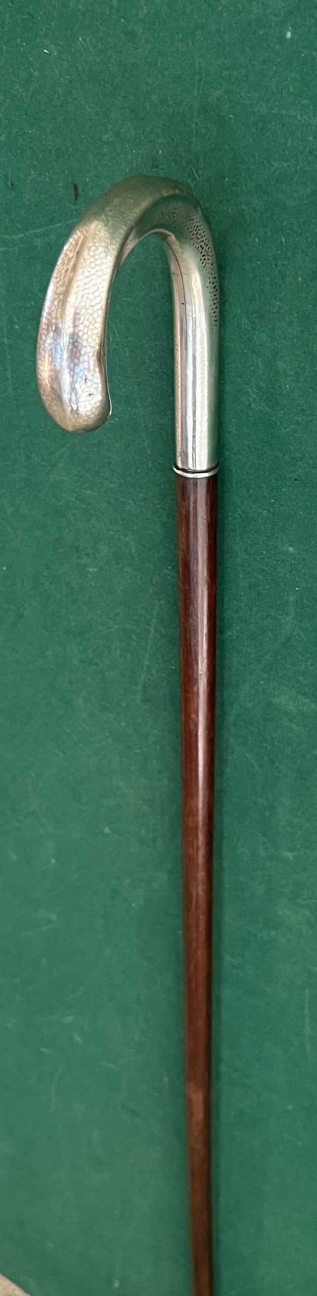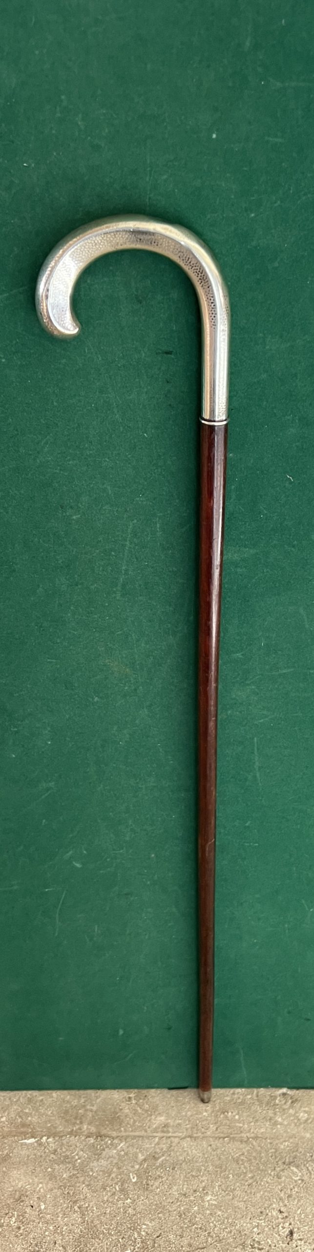 La poignée est en argent - le fût en acajou - la férule en fer blanc et acier - la longueur est de 91 cm - époque 19 ieme -