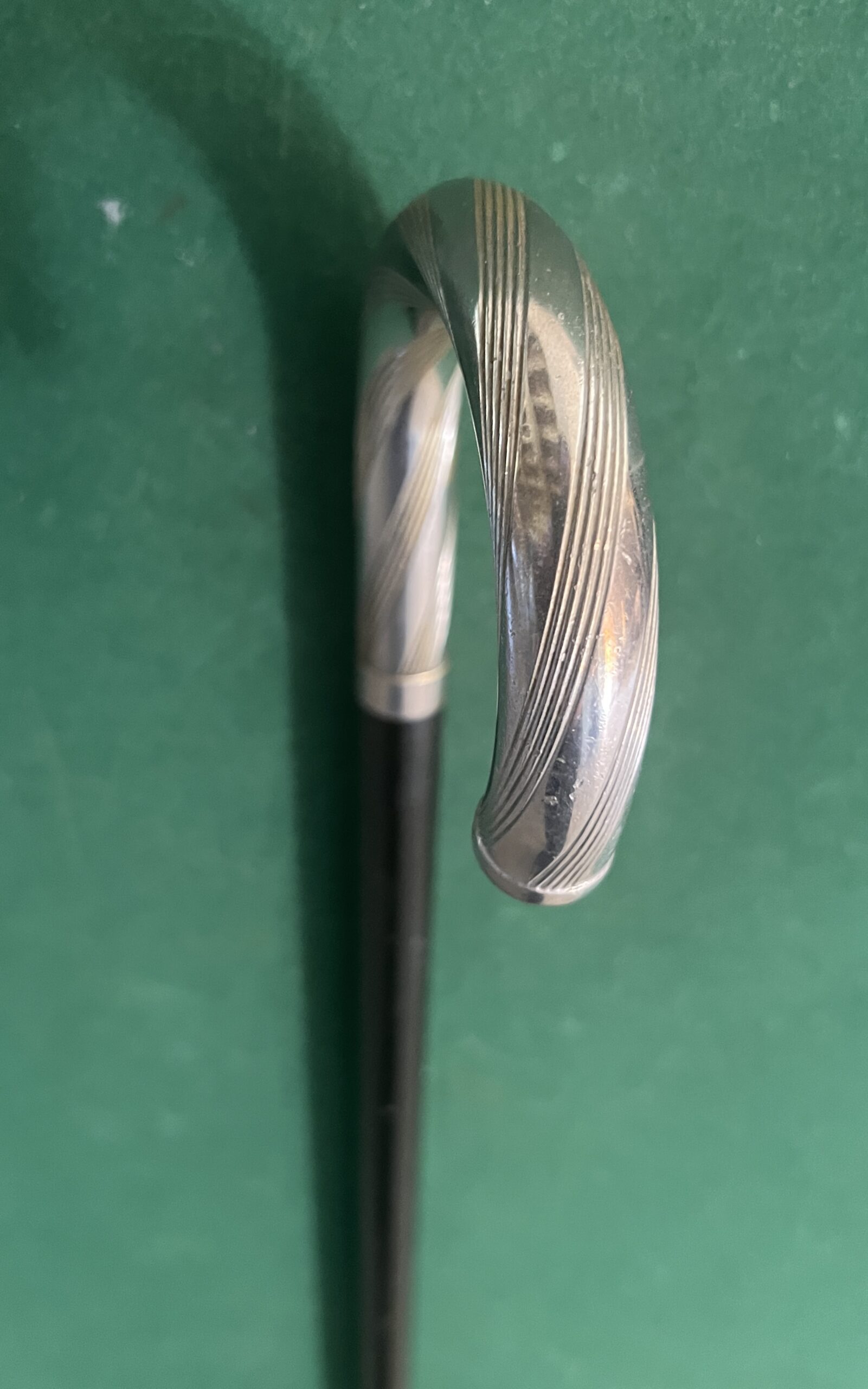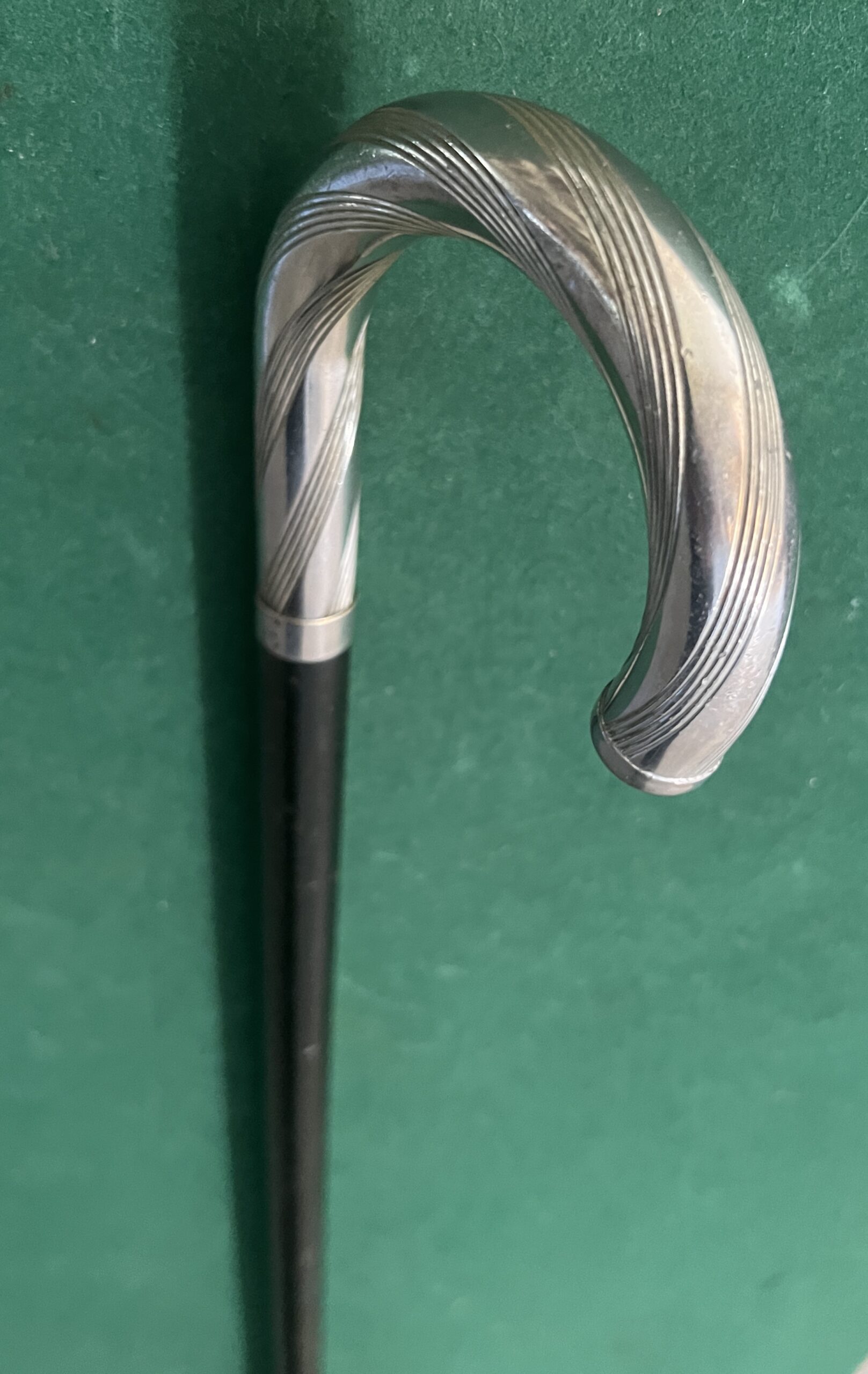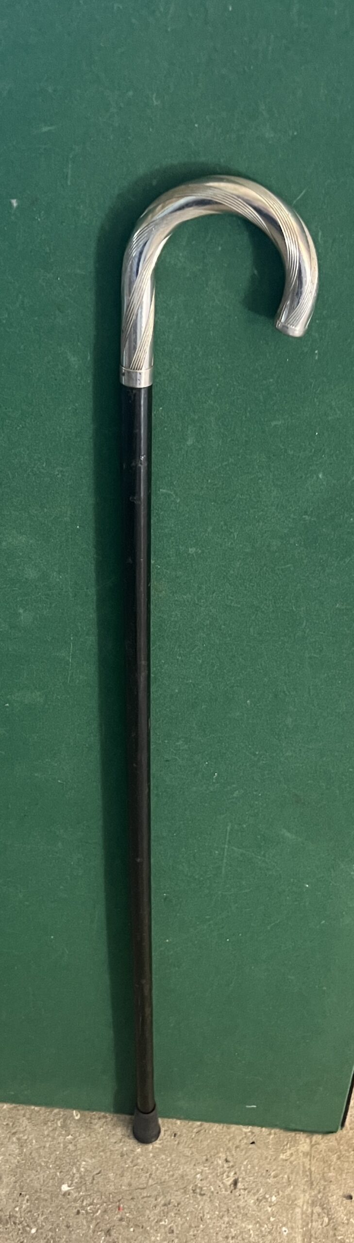 canne poignée corbin en métal argenté - le pommeau est en bois laqué noir - l’embout est en caoutchouc - la longueur est de 89 cm - époque milieu vingtième -