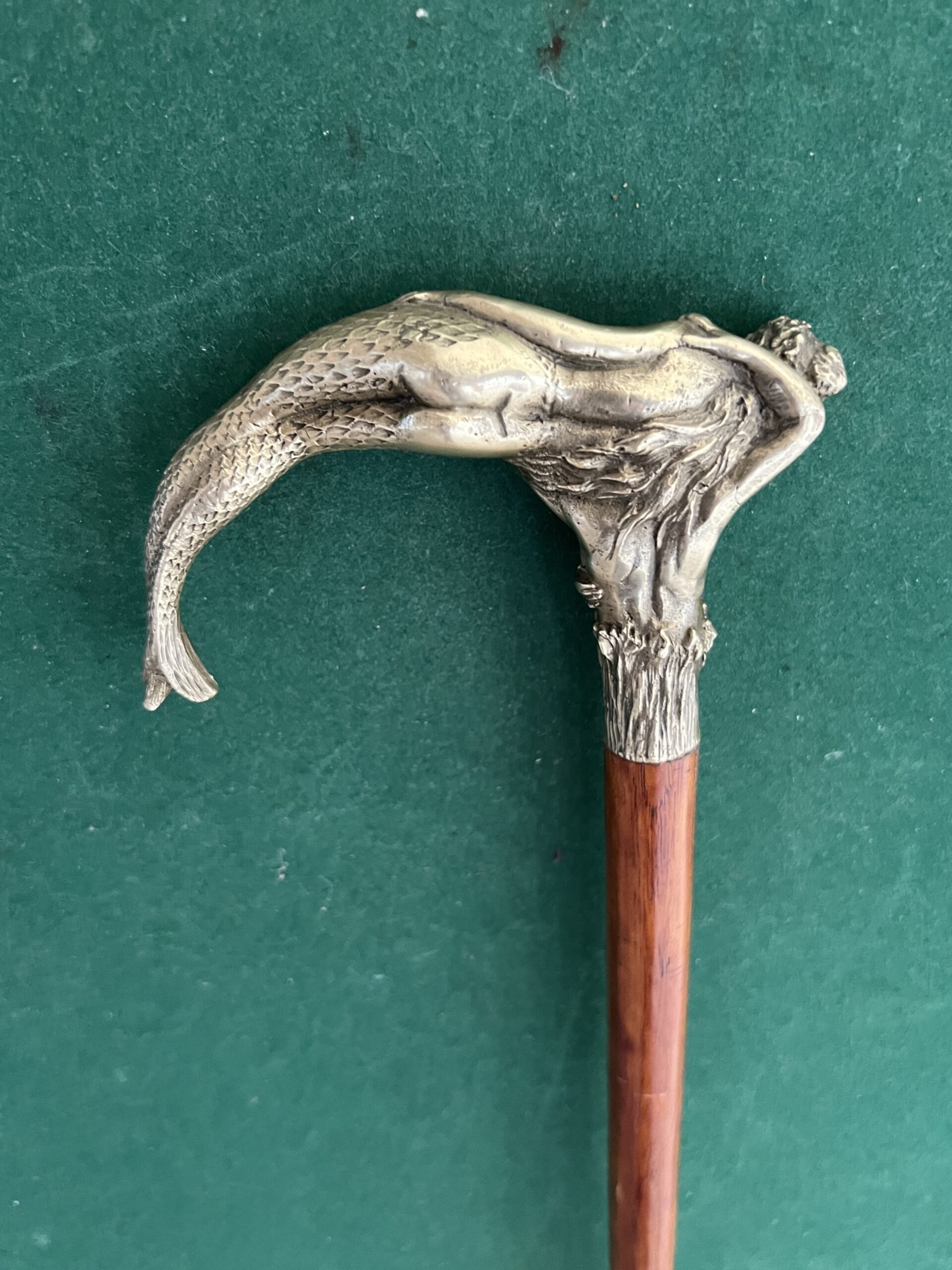 la poignée dans un très jolie bronze doré est très joliment travaillée - le fût est sûrement en cumaru un teck Brésilien - la férule est en cuivre avec talon en acier - la longueur est de 88 cm - époque première partie du dix-neuvième -