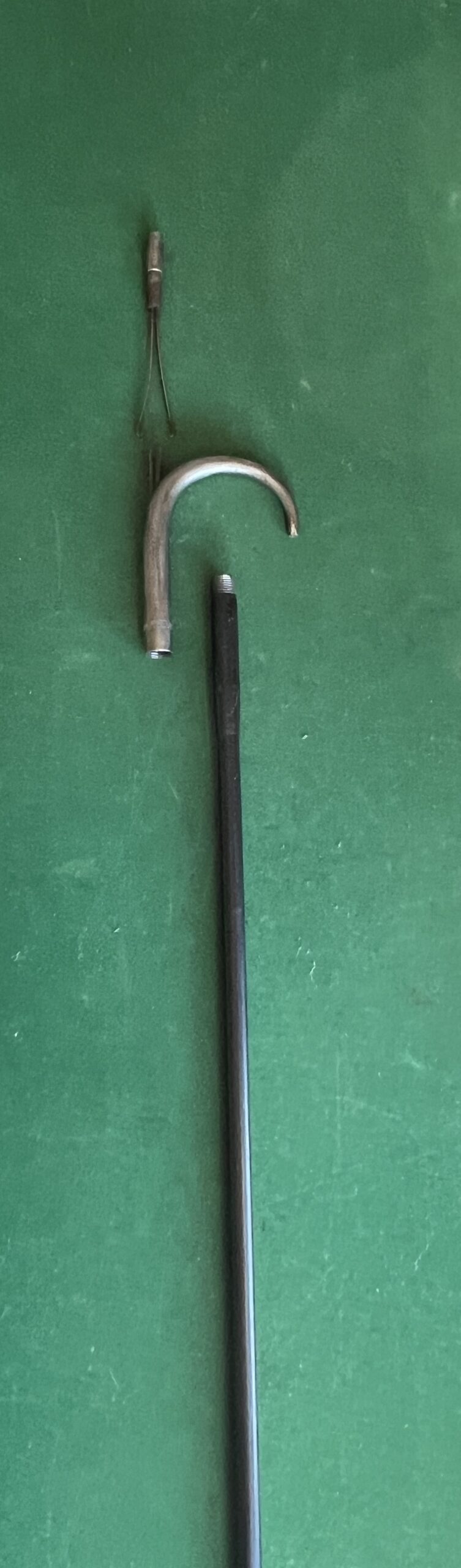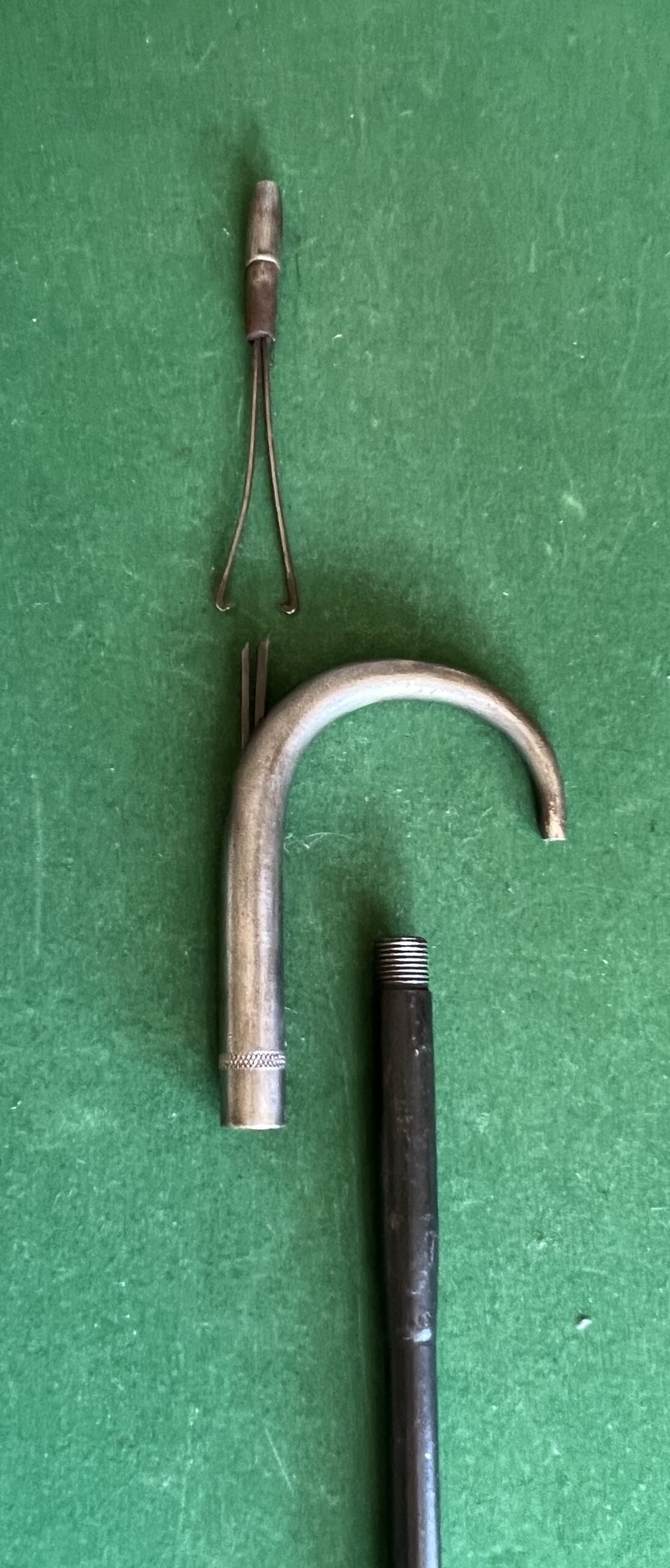 Le pommeau corbin est en acier - la gâchette se trouve sur l’arrière du pommeau - le fût est en acier - percuteur central - la férule sert d’extracteur - la longueur est de 87 cm - époque 19 ieme -
