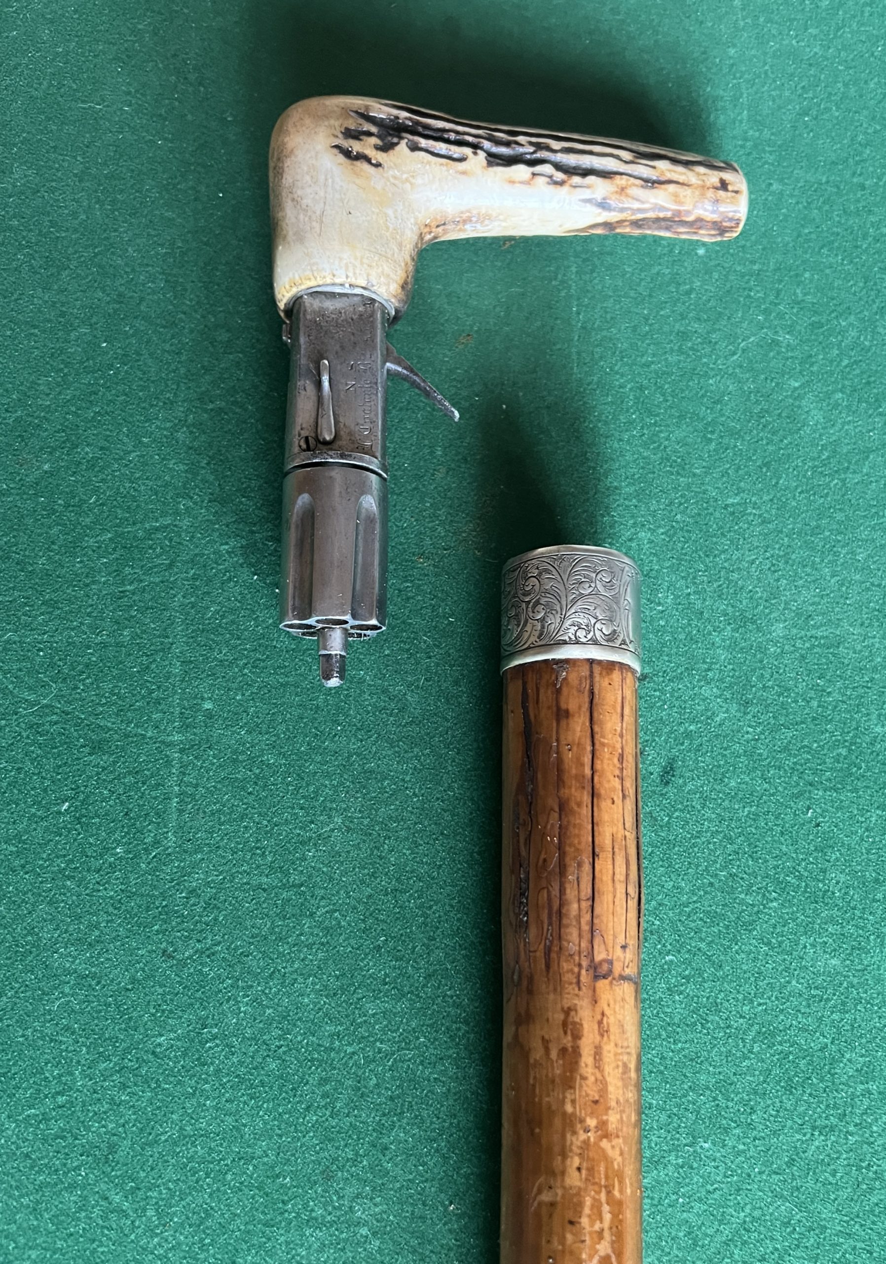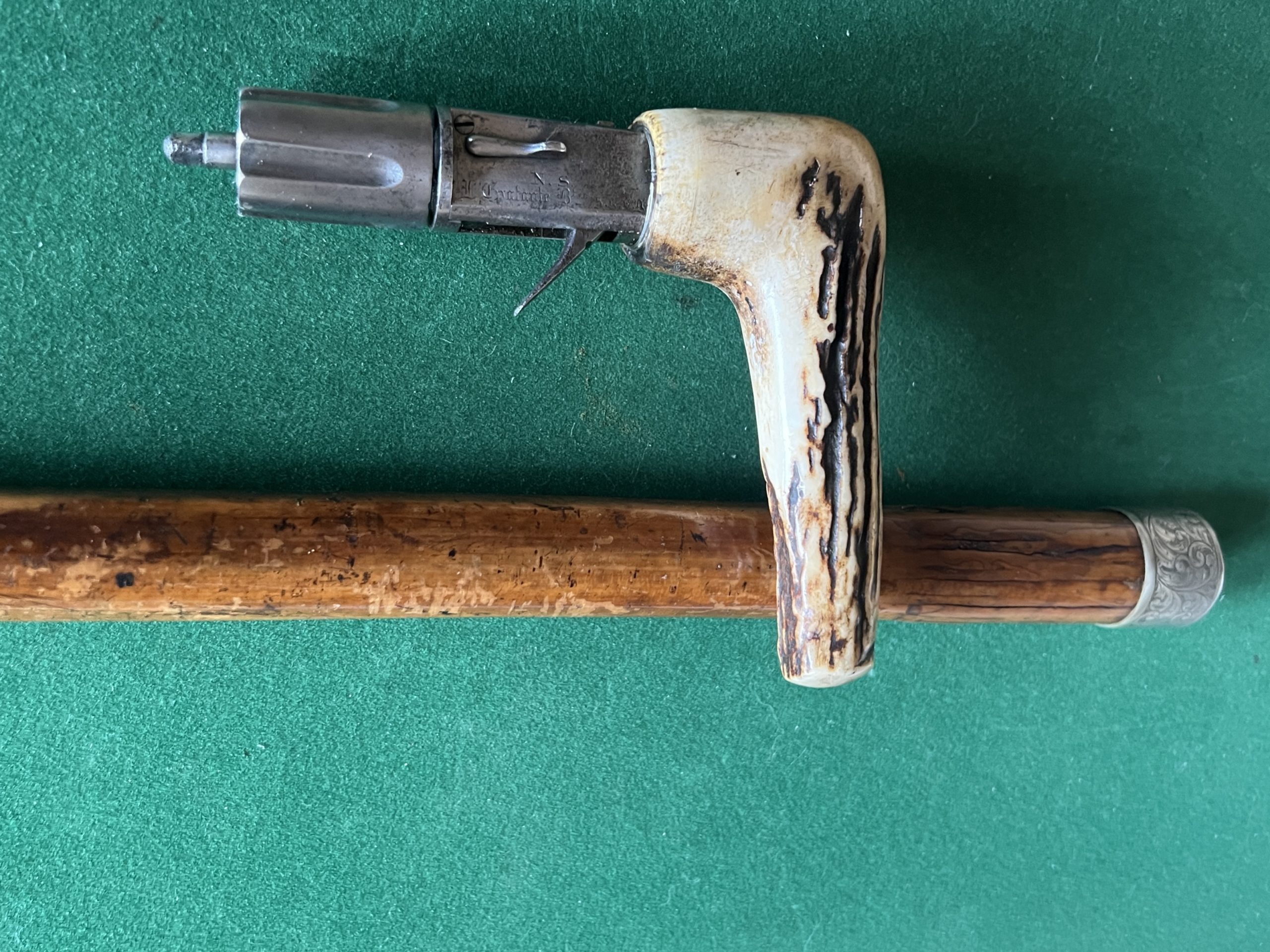 Très rare canne revolver Poiviere en 7 mm à percussion centrale