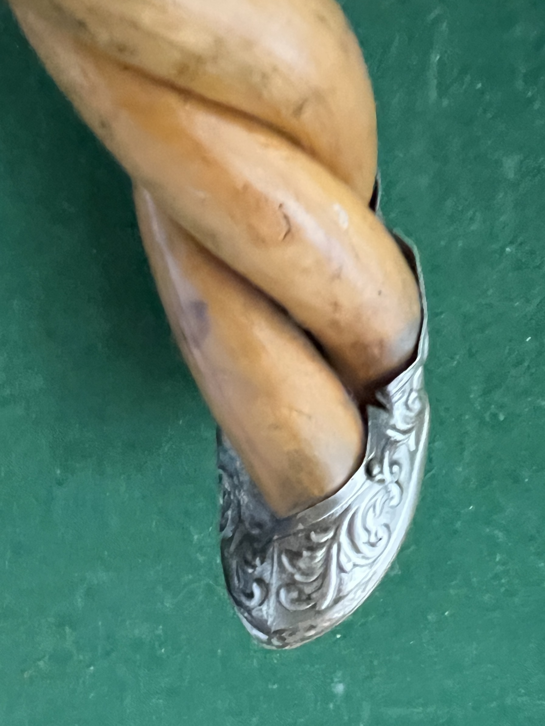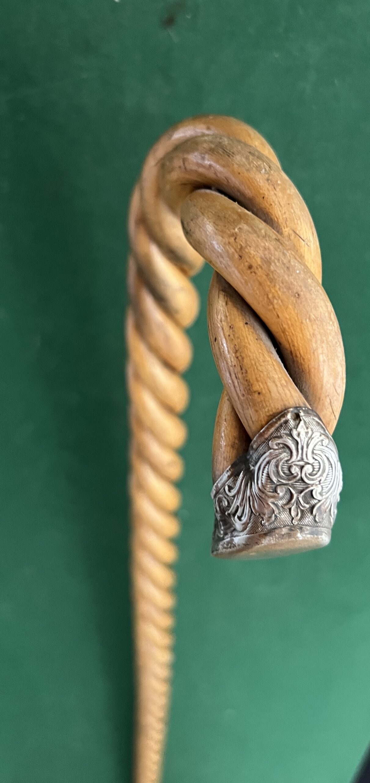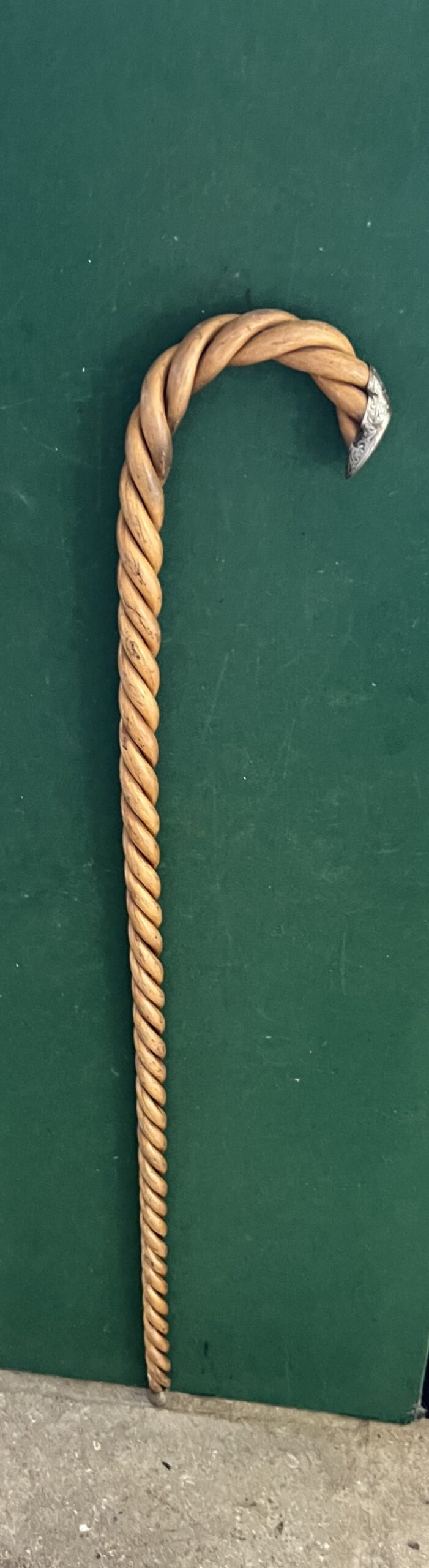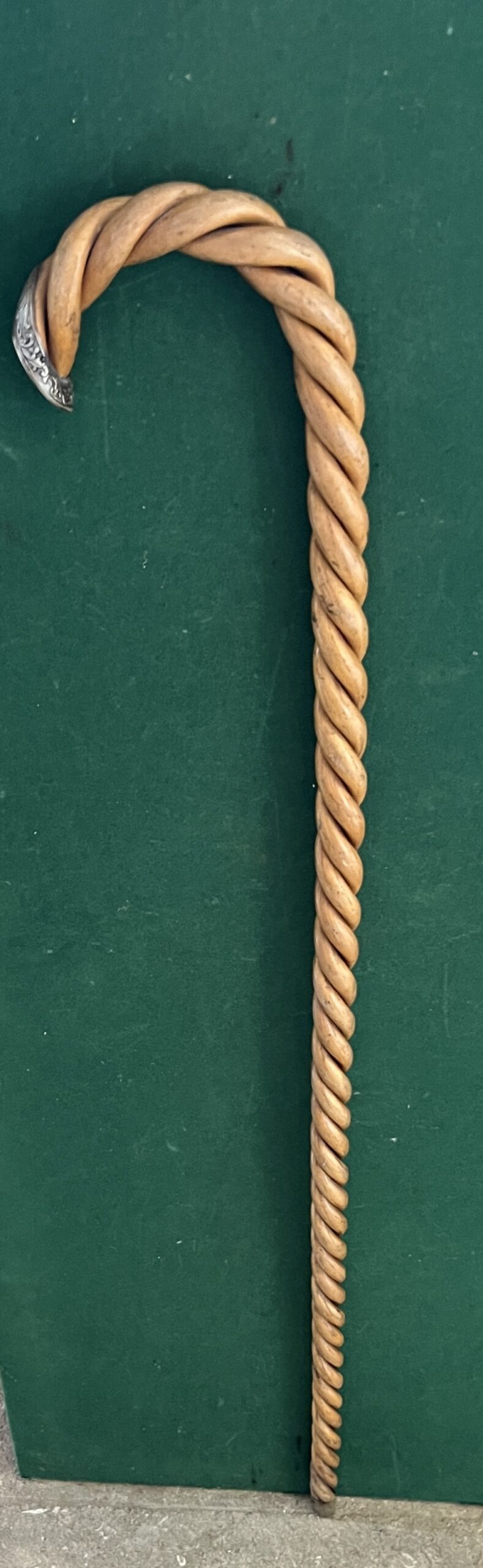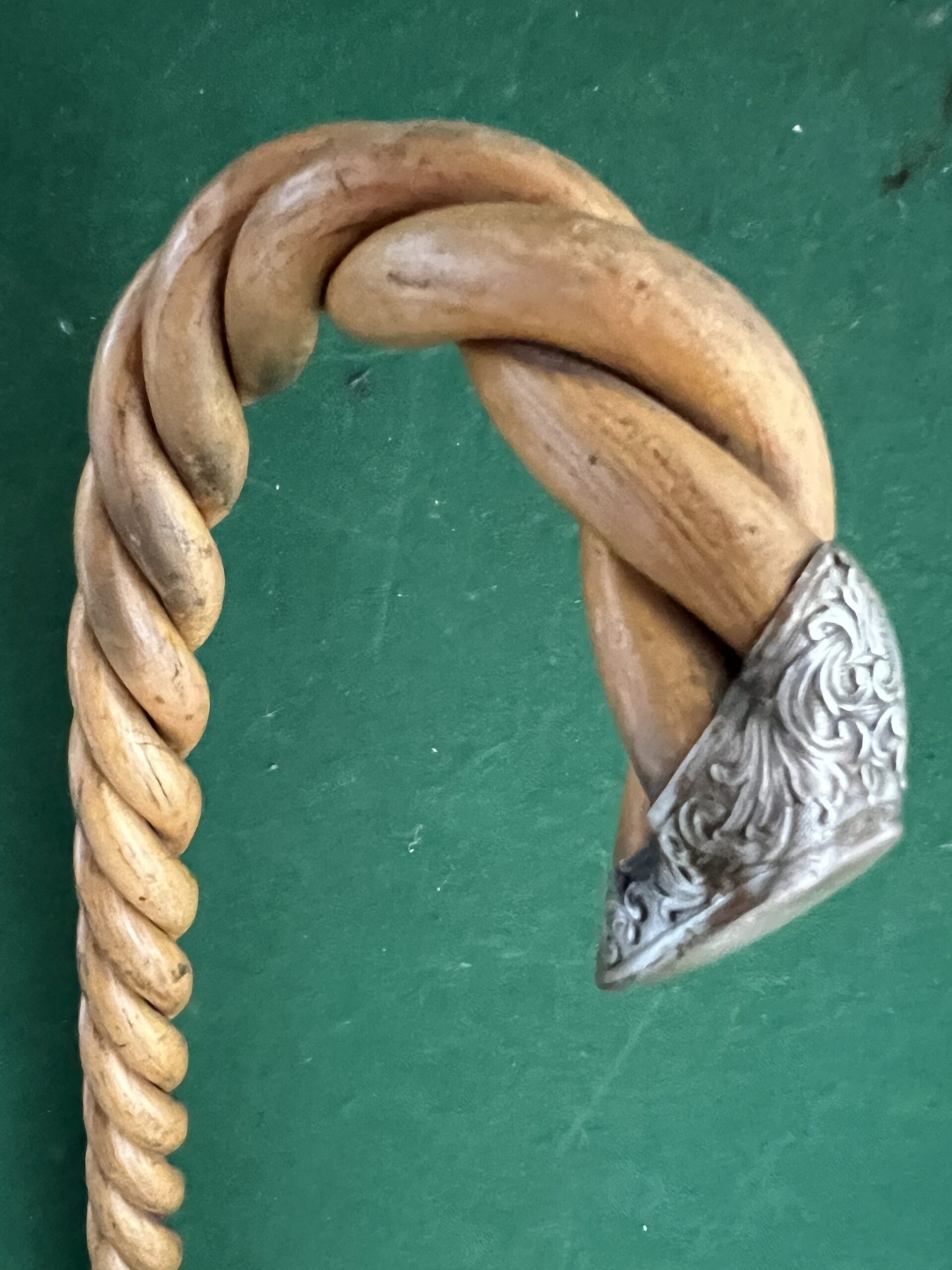 la canne est de trois morceaux tressés en Olivier - le bout du pommeau représente une chaussure - la férule est en fer blanc et talon en acier - la longueur est de 90 cm - époque début vingtième -!