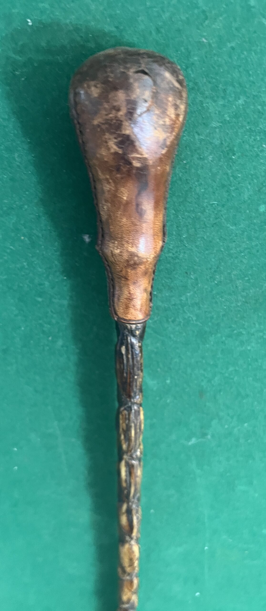 de droite à gauche - à gauche - la canne corbin de très belle qualité est joliment travaillé - la férule est en fer et acier elle mesure 90 cm - époque début 20 ieme - la deuxième est un nerf de bœuf le pommeau est en cuir la férule en cuivre - la longueur est de 93 cm époque début 20 ieme - le prix est de 160€ -