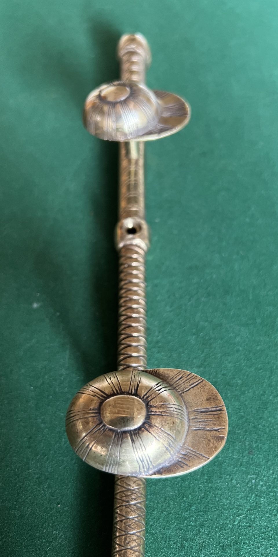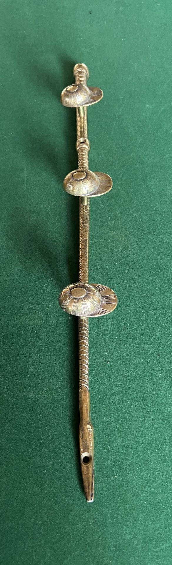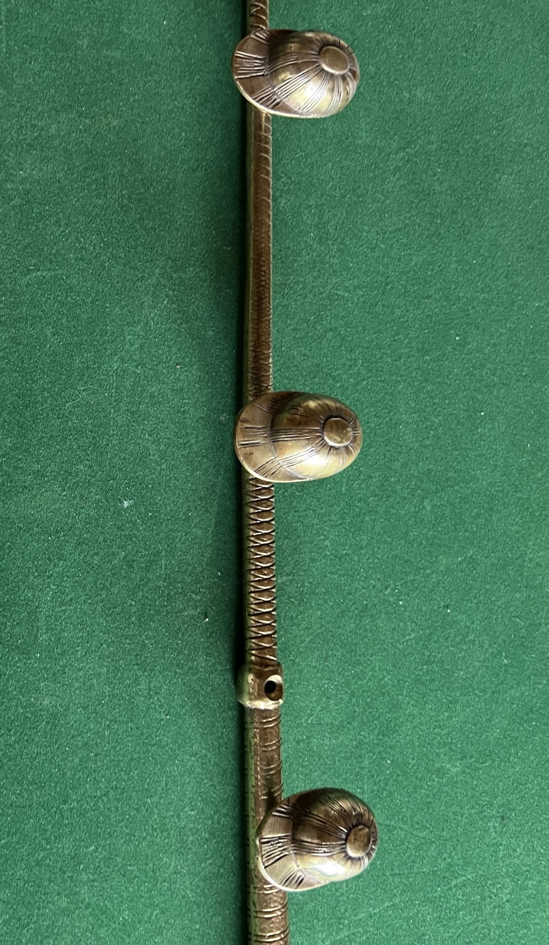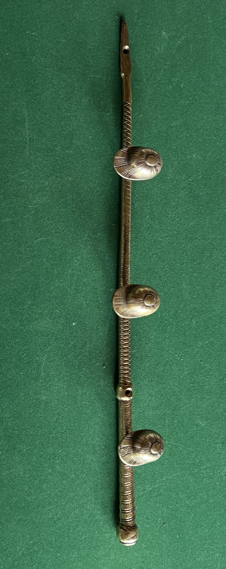 Porte cravaches en laiton le support est dans la forme d’une cravaches trois petites casquettes servent de portes manteaux objet très rare